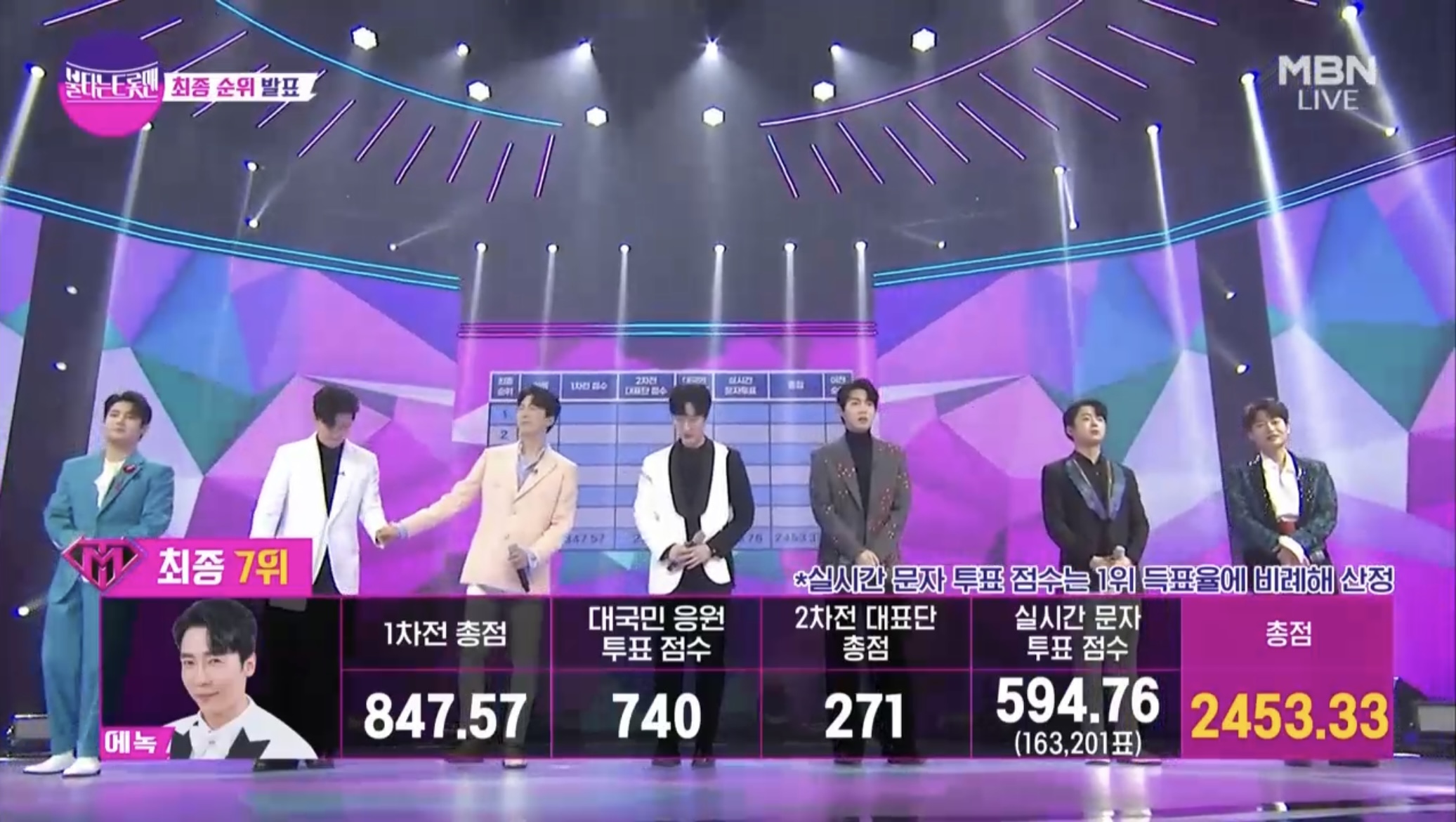 황영웅님이 하자하게 되면서 TOP7이 마지막 무대를 펼쳤습니다.