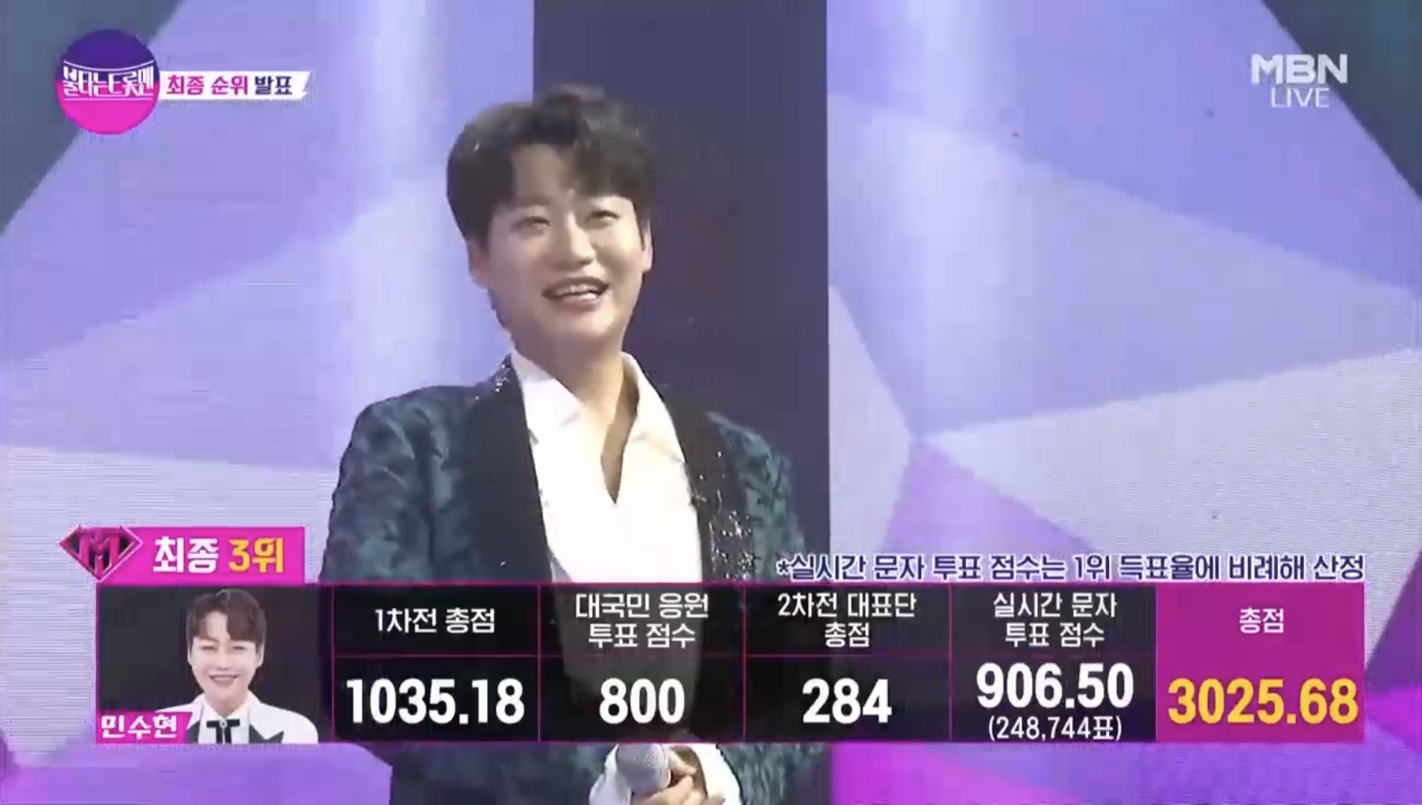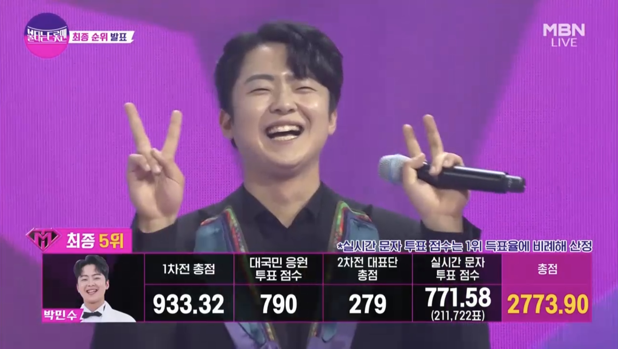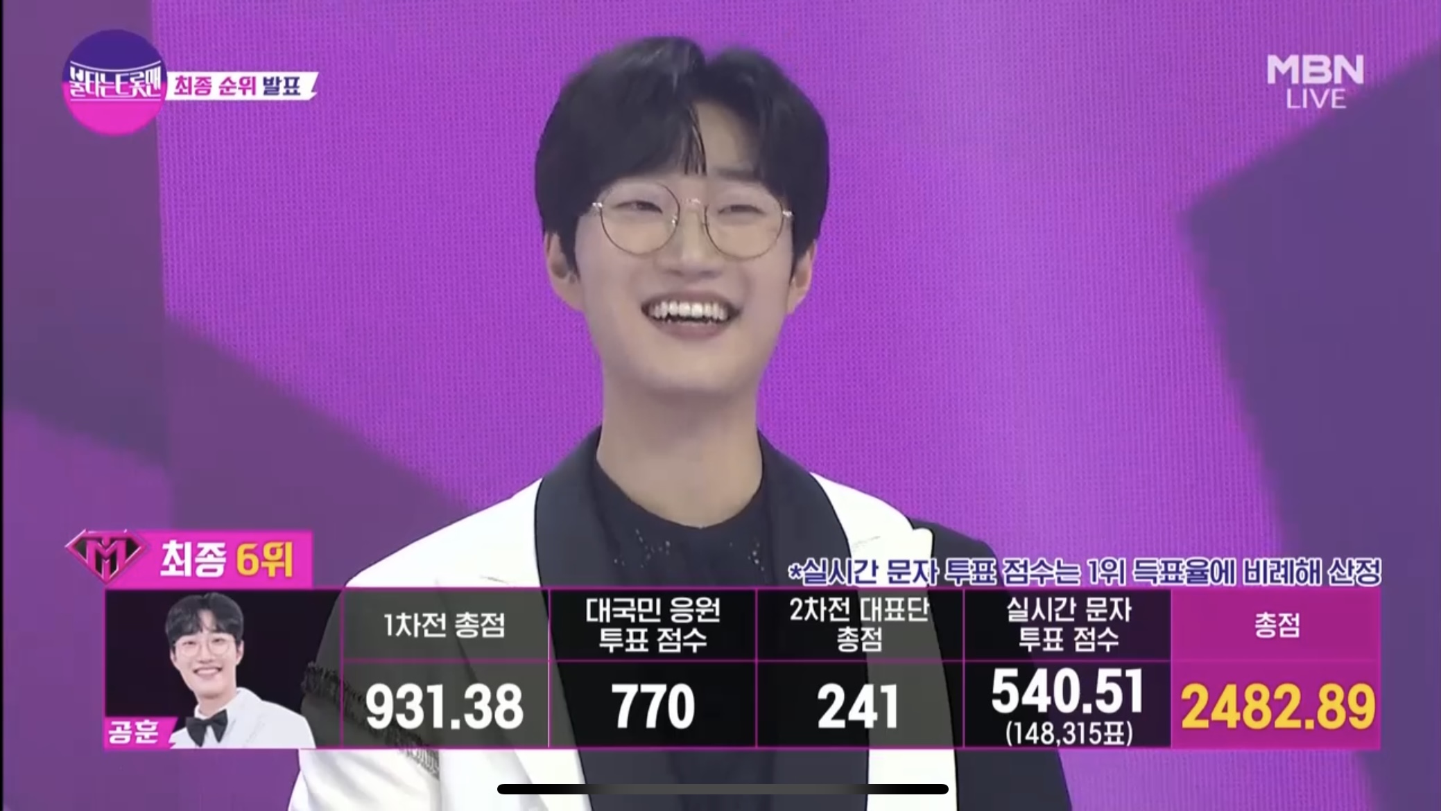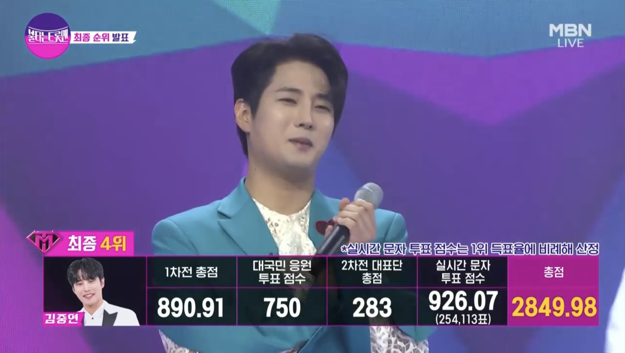 1차전 점수와 2차전 대표단 점수, 대국민 응원투표와 실시간 문자투표를 합산한 최종 순위가 발표되었습니다.