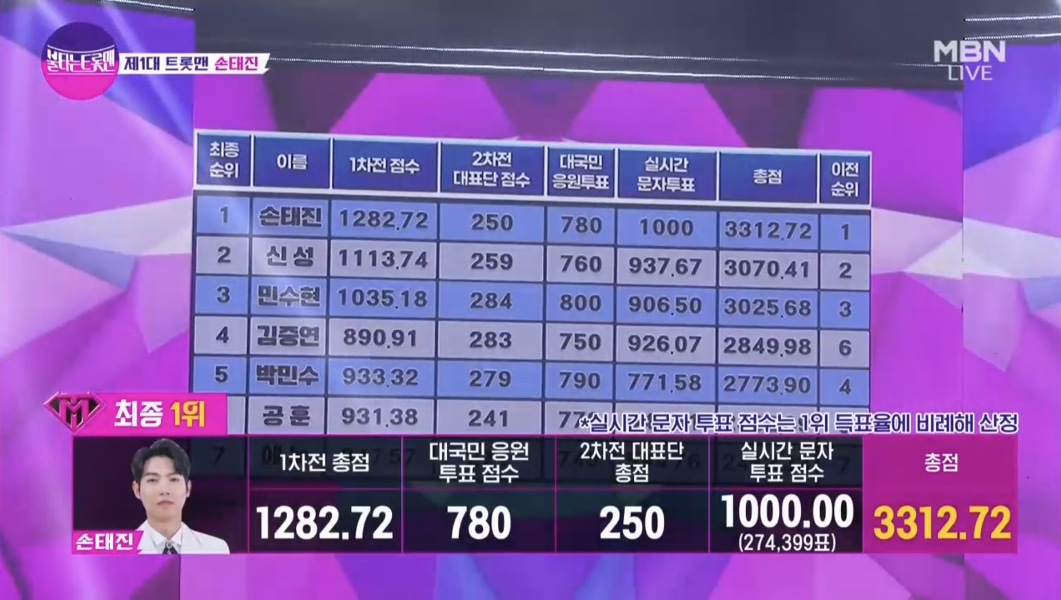 이변 없이 손태진님이 최종 우승자로 선정되었습니다.