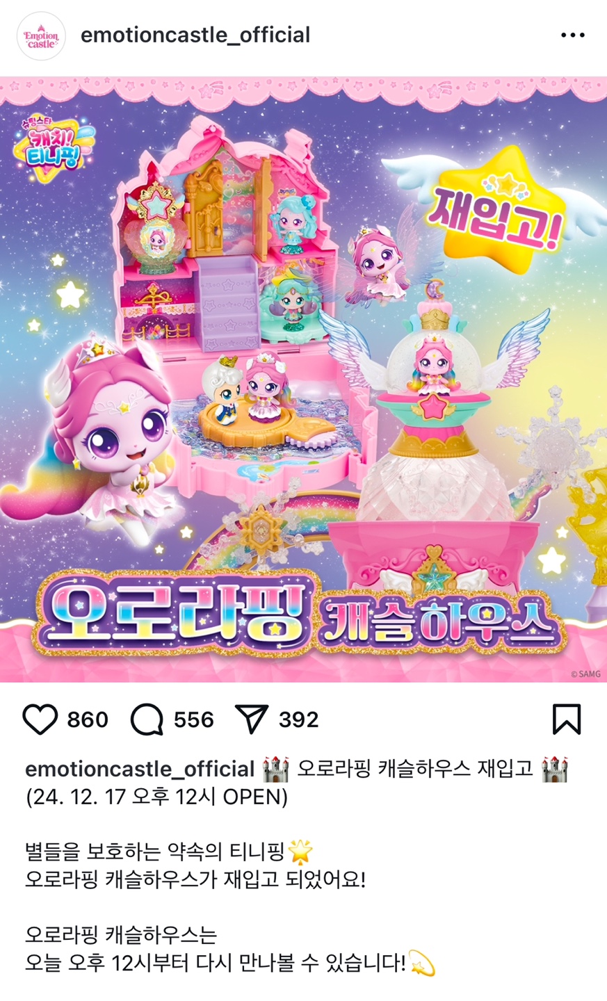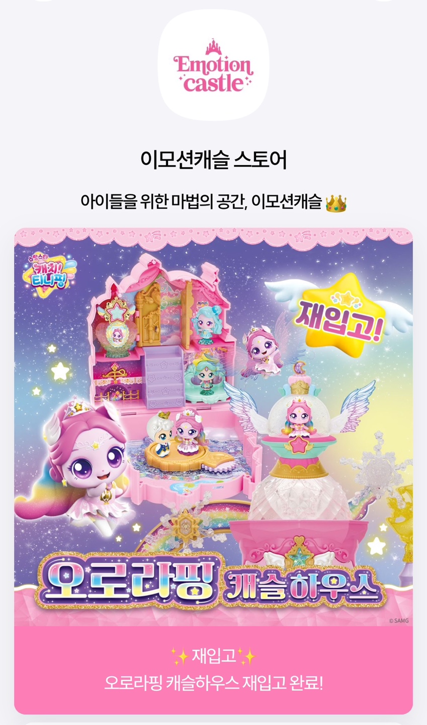 슈팅스타 티니핑의 레전드 티니핑 오로라핑 캐슬하우스의 인기가 나날이 폭발적인 가운데 출시 이후 전국 품절로 구할 수 없었던 오로라핑 캐슬하우스가 재입고되었습니다.