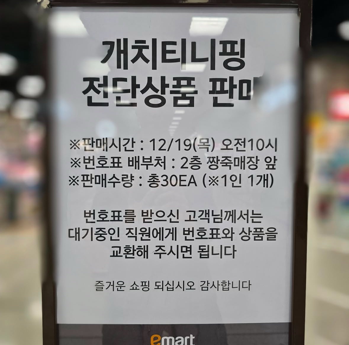 금일(12/19 기준) 오전 10시에 전국 이마트에 매장별로(개수 상이) 재고가 풀렸다고 합니다.