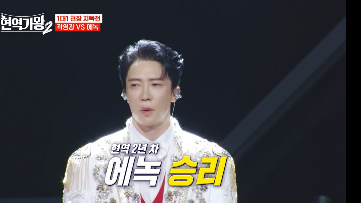 곽영광 님이 신나게 선방했음에도 불구하고 에녹 님의 열정적인 무대에 몰표가 나오면서 승리하게 됩니다.