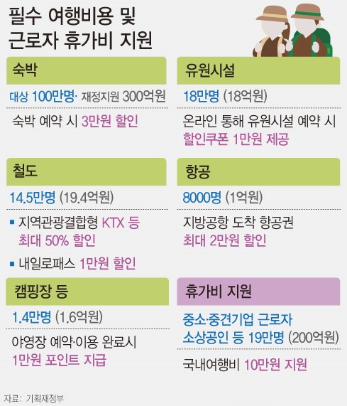 또 중소 및 중견기업 근로자에게는 국내 여행비 10만 원을 19만 명에게 지원합니다.